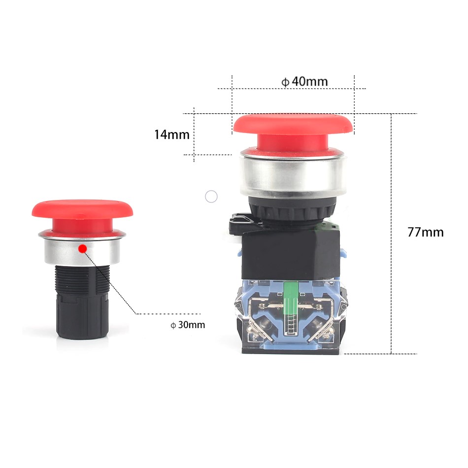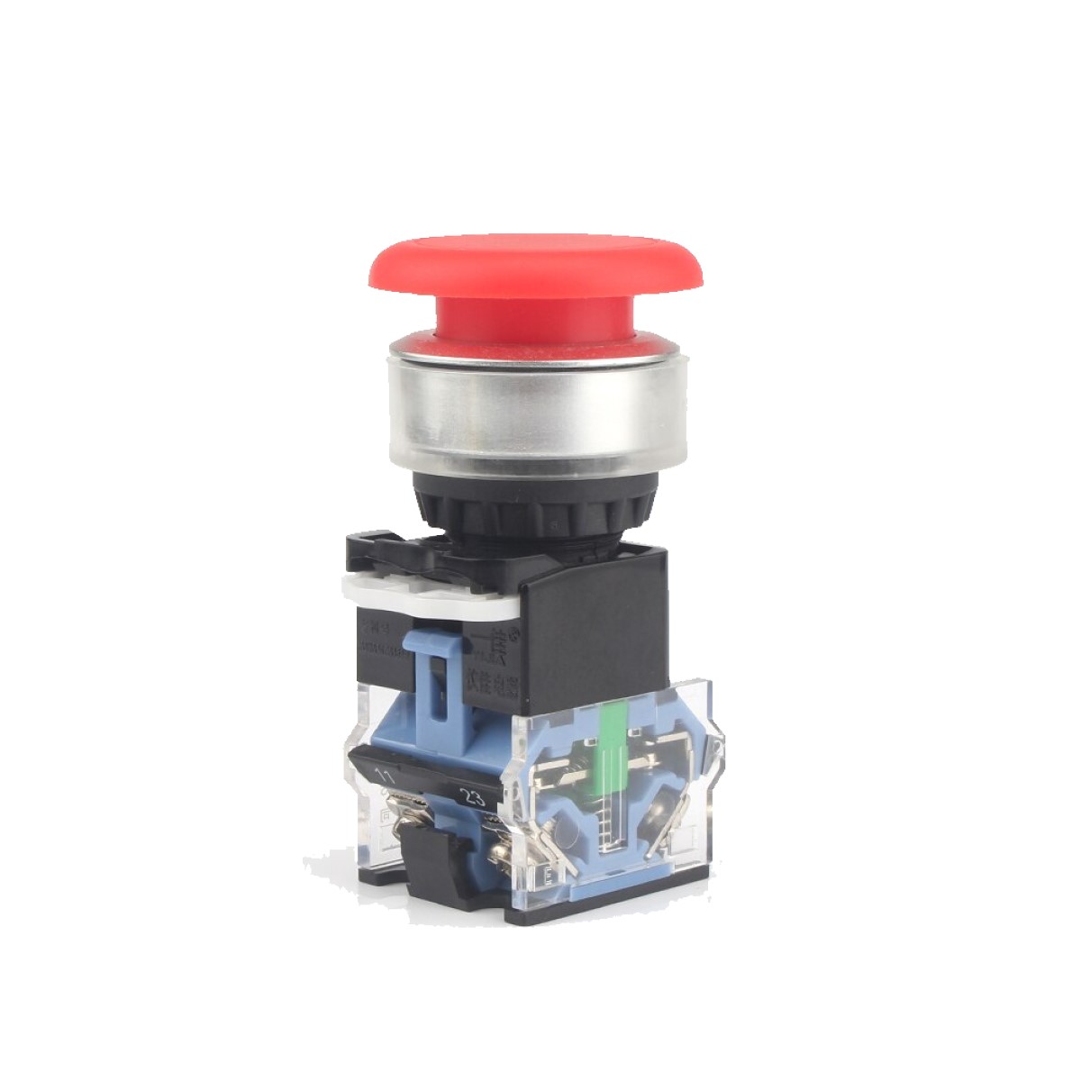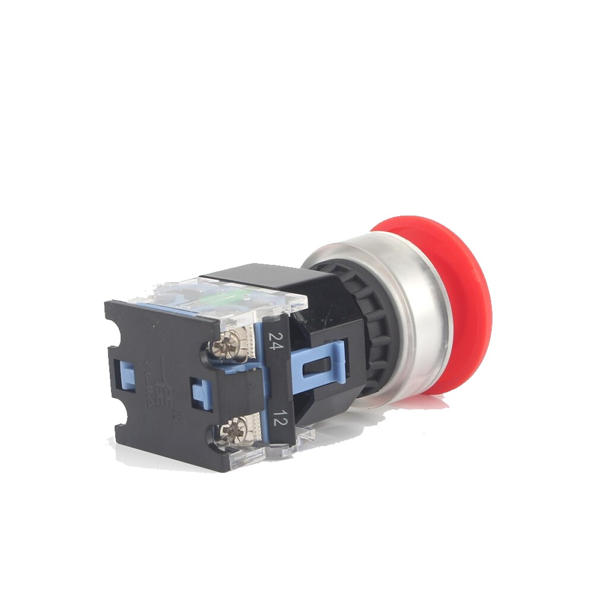 El switch LA38-11MZS cuenta con un contacto de bloque tipo LA38-1NC1NO que tiene un contacto Normalmente Abierto y uno Normalmente Cerrado. El interruptor es permanente y con autobloqueante, es decir si lo oprimes al soltarlo se queda accionado y para desbloquearlo se requiere volver a oprimir. Se puede utilizar para activar contactores, arrancadores, electro válvulas, entre otros aparatos eléctricos pero sobre todo es utilizado en paros de emergencia o de seguridad.