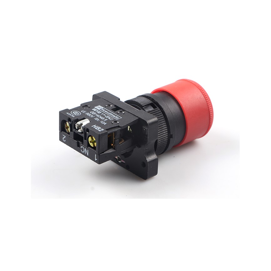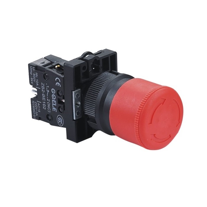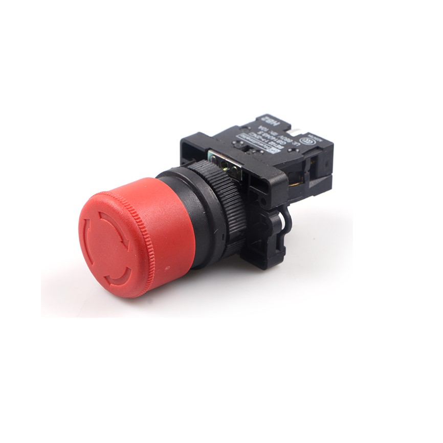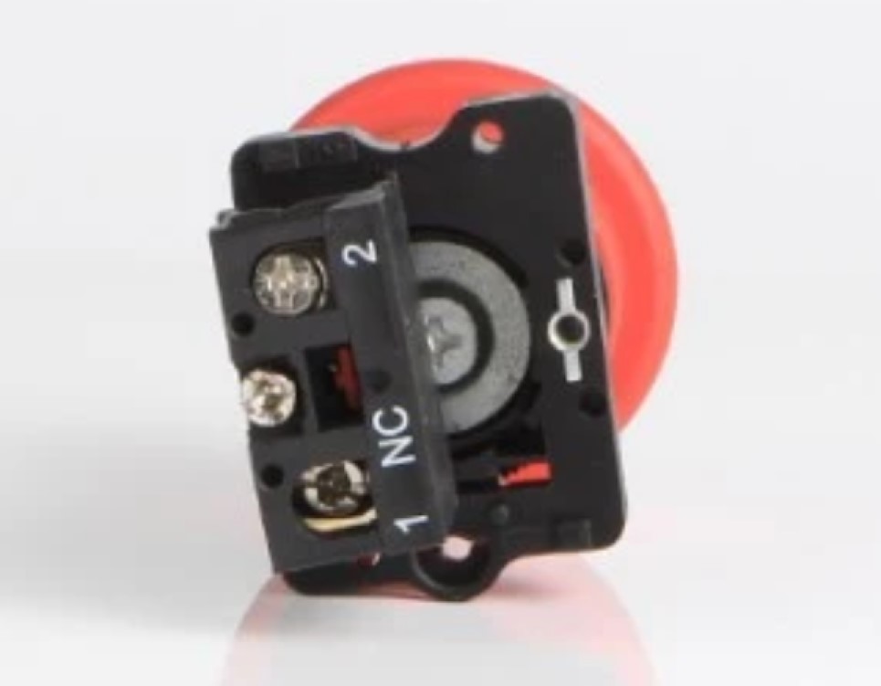 El switch XB2-ES442 cuenta con un contacto de bloque tipo ZB2-BE102C NC. El interruptor es permanente y con autobloqueante, es decir si lo oprimes al soltarlo se queda accionado y para desbloquearlo se necesita gira la perilla. Se puede utilizar para activar contactores, arrancadores, electro valvulas, entre otros aparatos electricos pero sobre todo es utlizado en paros de emergencia o de seguridad.