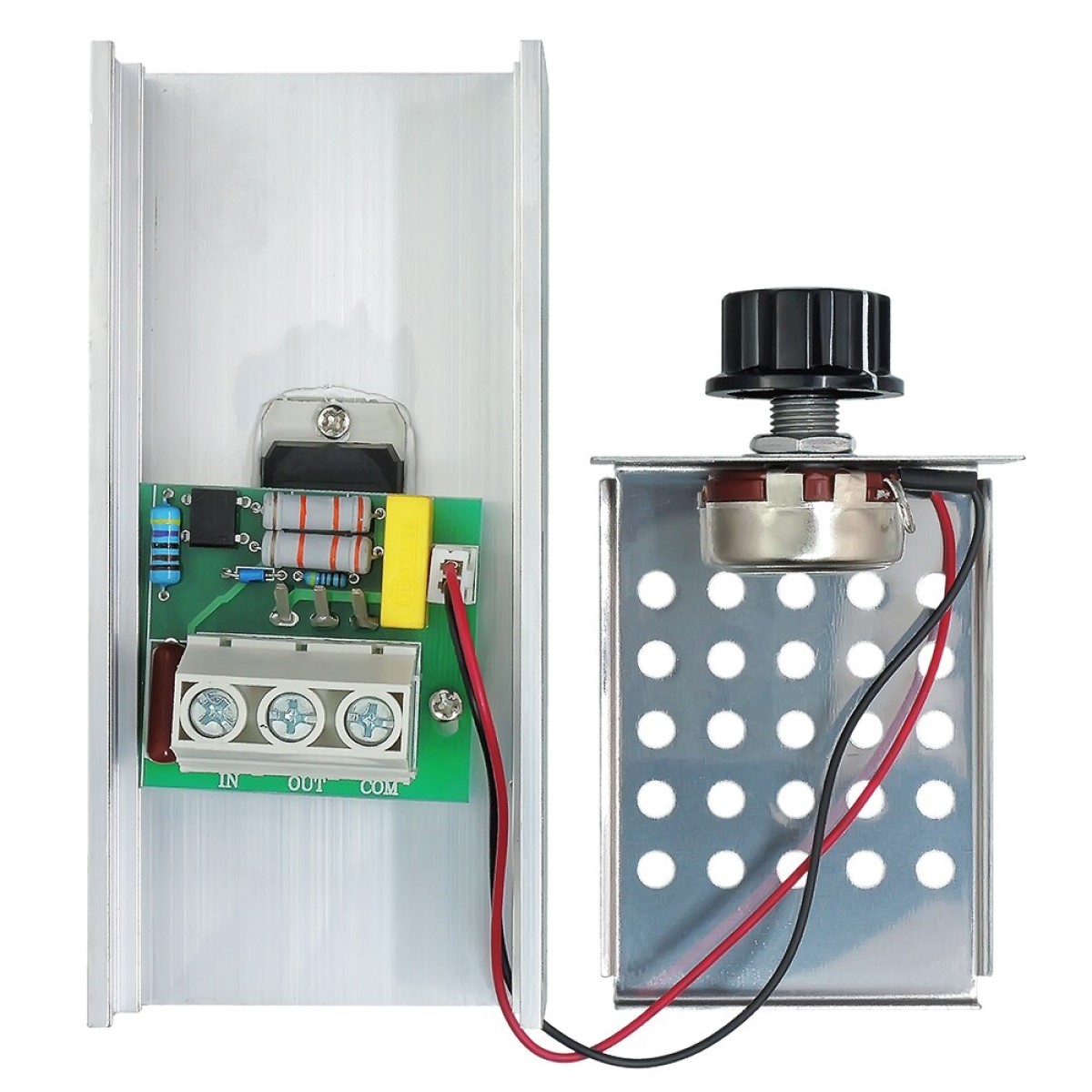 Cuenta con una carcasa de aluminio que le permite disipar el calor que el triac genera. Su circuito de disparo le permite tener un control de voltaje preciso y la regulación desde 0 empieza a partir de los 10V.