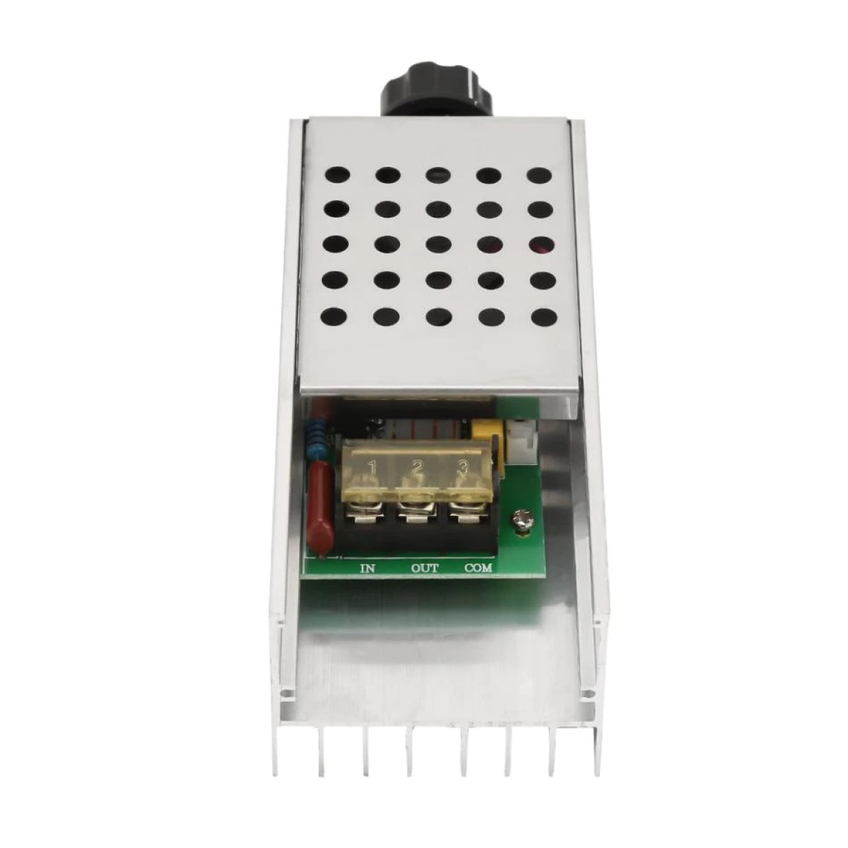 El ACMC60-25A incorpora un potenciómetro con el cual puede ajustarse la velocidad.Tiene un pequeño tamaño pero puede suministrar hasta 6000W de potencia (carga resistiva) con un voltaje de alimentación de 110VCA – 220VCA.