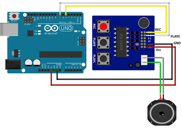El modulo ISD1820 es de fácil control y operación , puede ser operado mediante los botones que tiene incorporado el mismo módulo o mediante un microcontrolador puede controlar grabación reproducción y repetición como PIC AVR Arduino, STM32, etc.