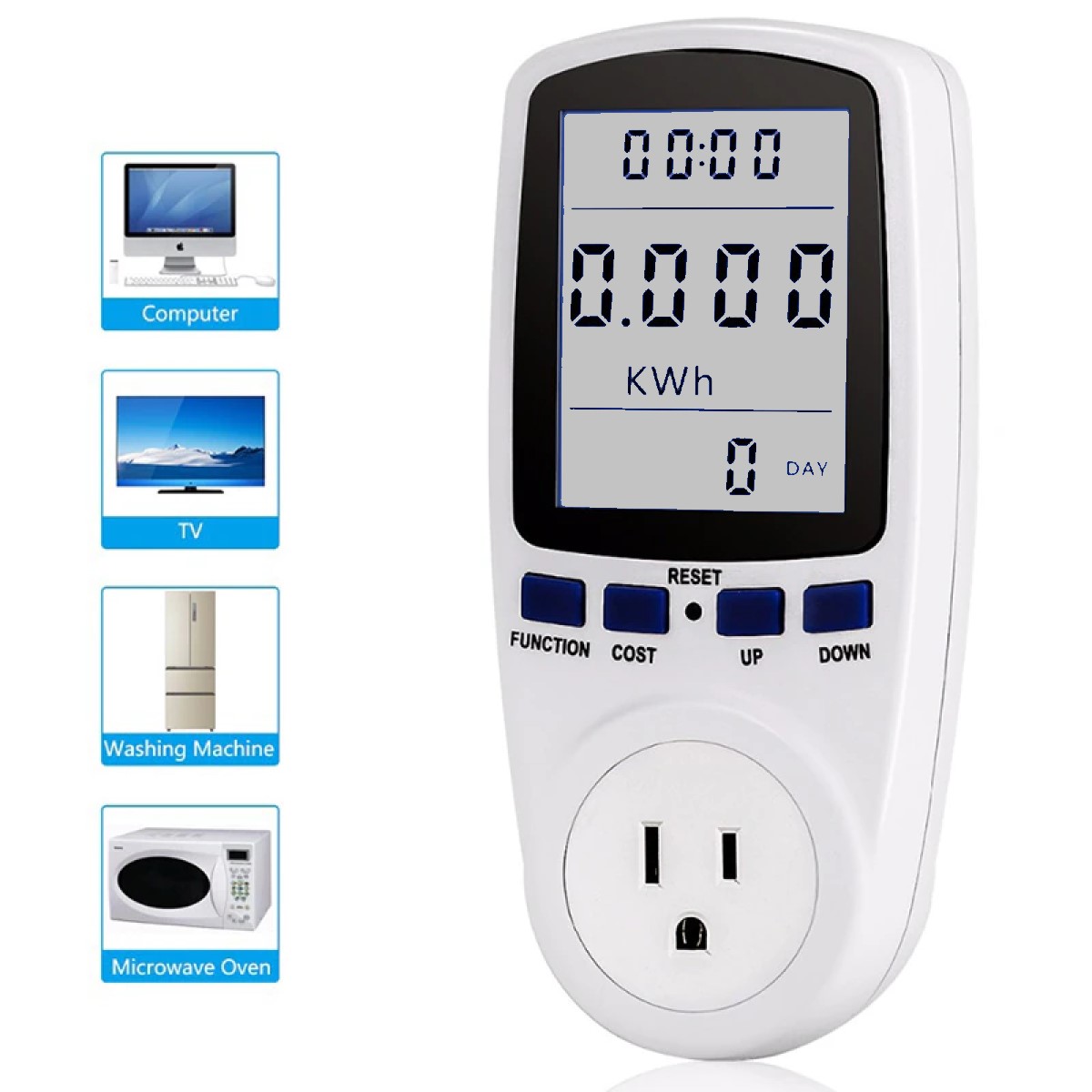 El medidor de consumo eléctrico PM001 te puede ayudar a descubrir cuál de tus electrodomésticos consumen mas energía. ¡Entonces puede comenzar a reducir sus facturas de energía! Este medidor está diseñado para monitorear fácilmente su consumo de energía y ayudar a evaluar la eficiencia de sus electrodomésticos. Este modelo mide el consumo de energía en Kilovatios hora, de la misma forma que lo hacen las empresas de servicios públicos (CFE). El producto cuenta con una pantalla LCD de fácil lectura para que pueda ver, calcular y pronosticar sus costos fácilmente.
