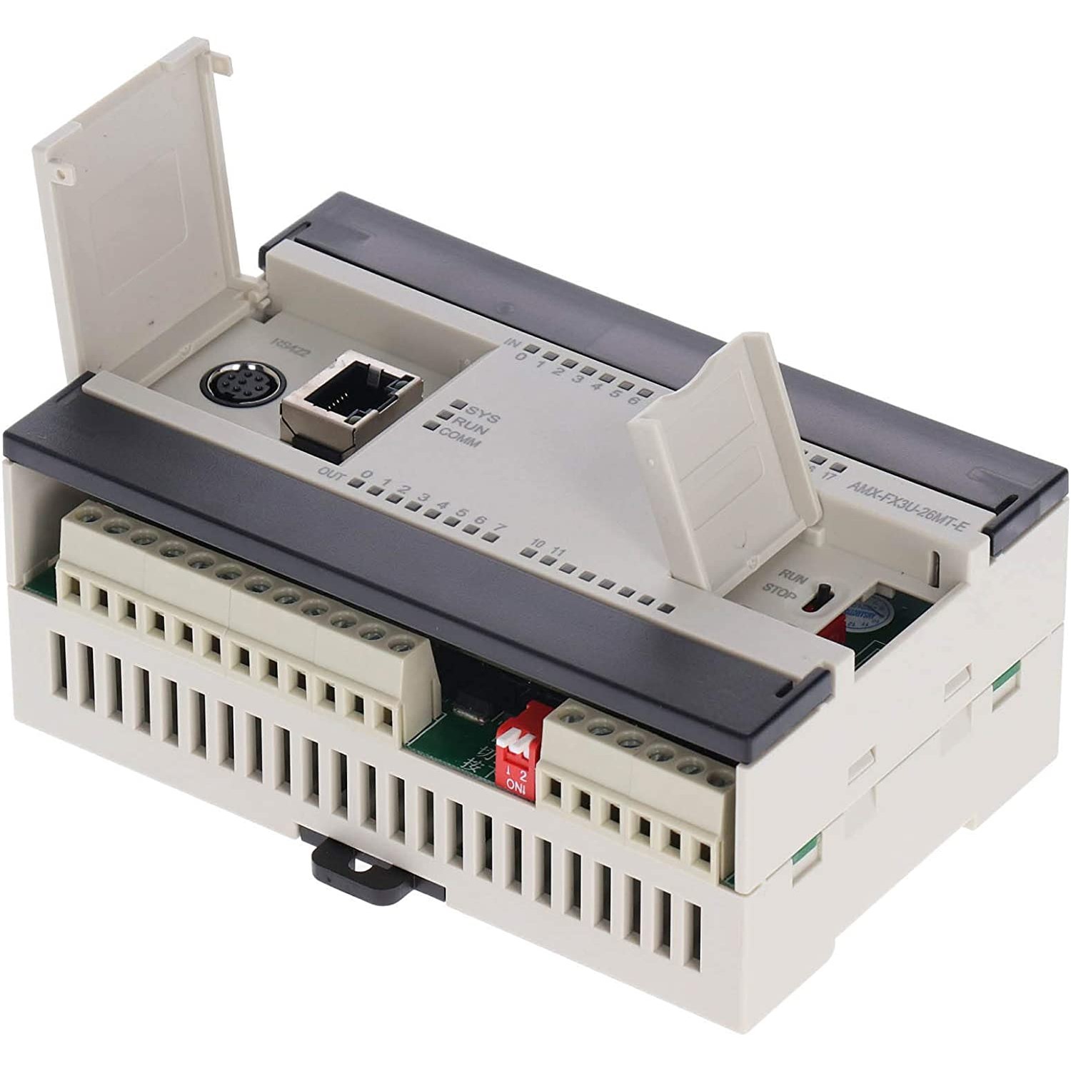 El PLC AMX-FX3U-26MT-E es un PLC de compatible con la serie FX3U de Mitsubishi que han sido muy populares en la industria, pero este PLC no acepta módulos de expansión de ningún tipo salvo que sean conectados vía RS485.
