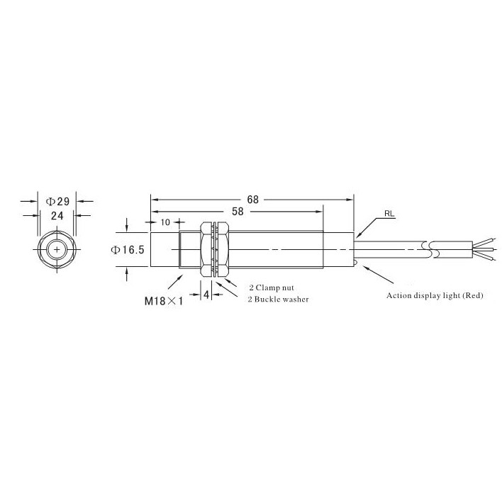 Tiene la ventaja de poder ser alimentado en un rango de voltaje de 90 – 250 VCD , ademas de generar una respuesta hasta una velocidad de 25 Hz su forma cilíndrica con un tamaño estándar  M18 ademas lo hace muy fácil de instalar ya que también cuenta con dos tuercas de sujeción.