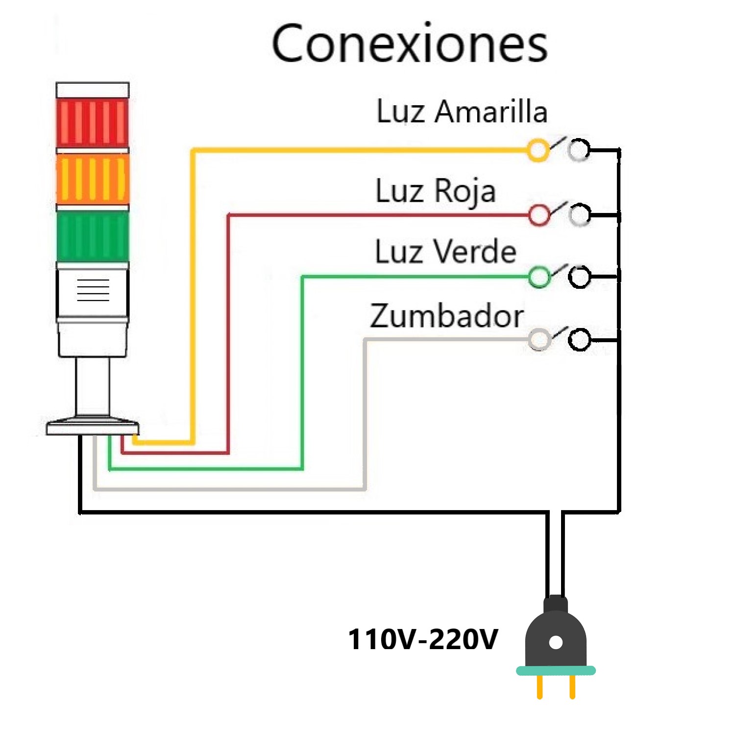 Ya sea para indicar la operación de una maquina o el estado de movimiento de algún proceso, la torre HW-3W es un excelente apoyo para este tipo de tareas. Para información acerca de las conexiones vea la imagen de conexiones.