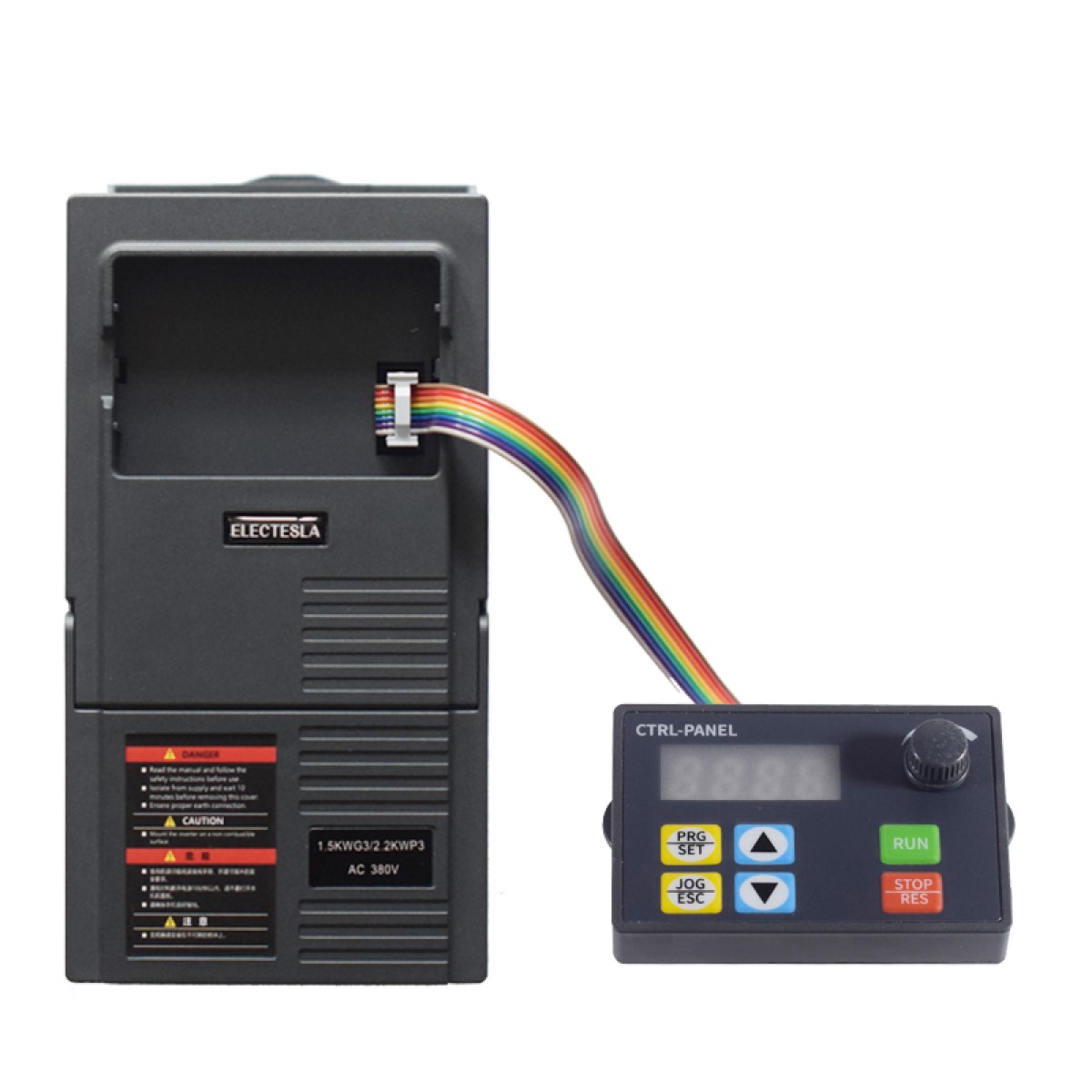 Teclado de control. El control total del variador puede hacerse mediante el teclado integrado en el variador y mediante un cable UTP el cual esta incluido.