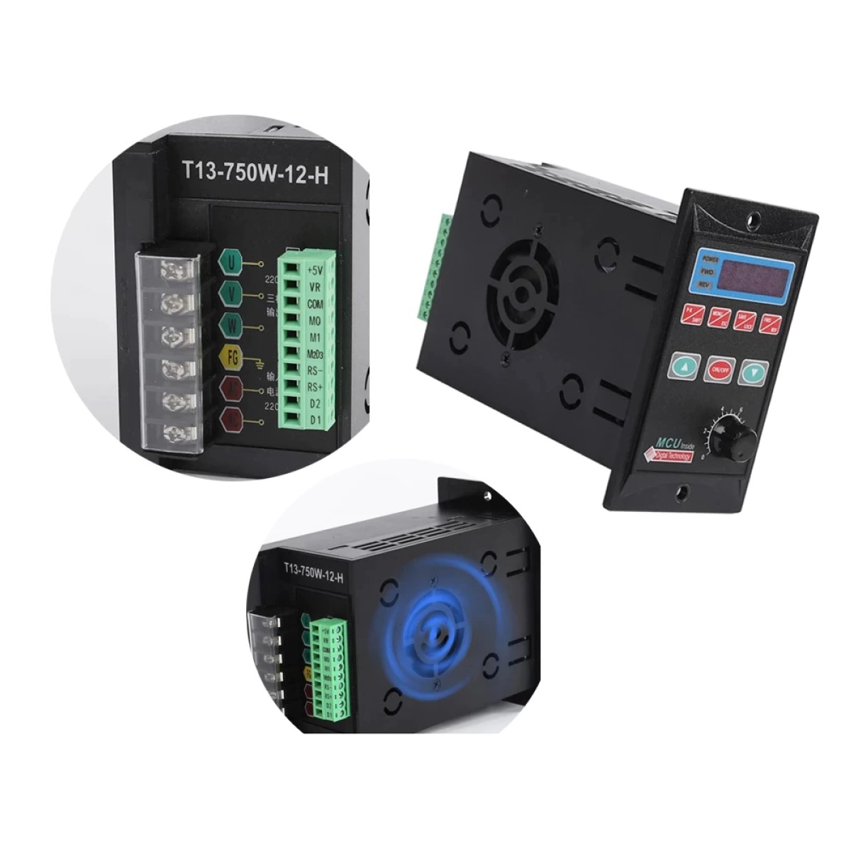 El Variador T13-750W que te ofrecemos tiene la capacidad de alimentarse con un voltaje de 220V monofásico pero su salida es de 220V trifásico.